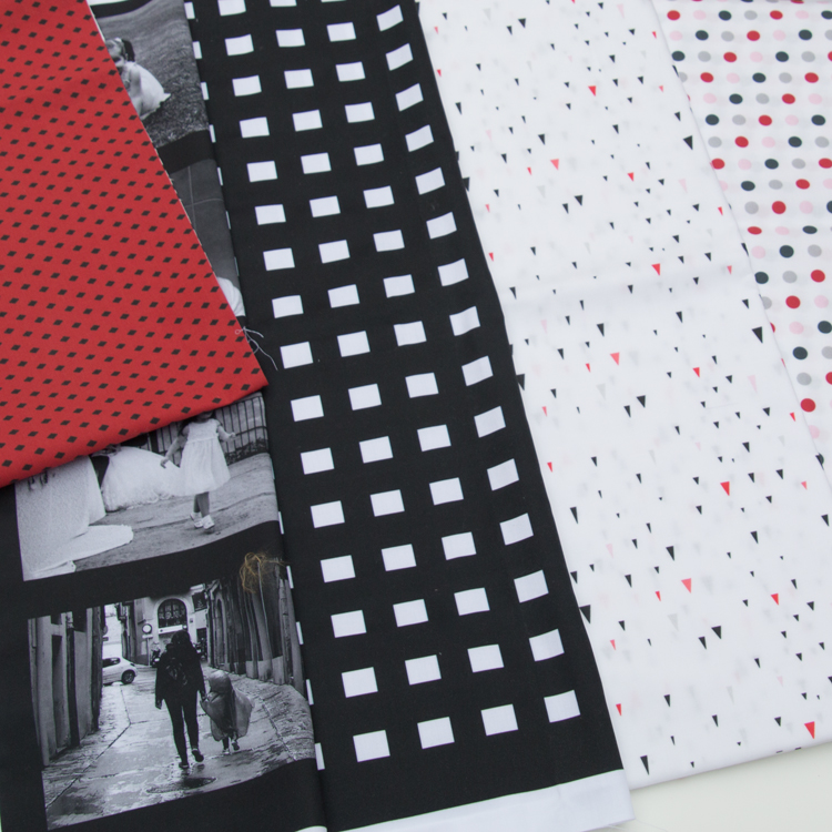 kit colcha de patchwork con fotos tira de película en rojo, negro, rosa y blanco
