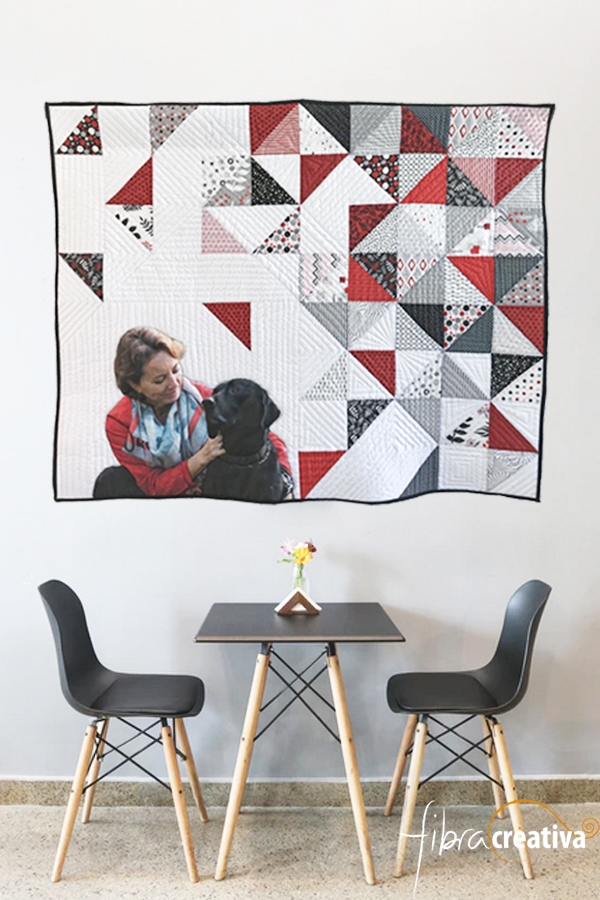 mon chien et moi, quilt moderne rouge blanc noir Fibra Creativa